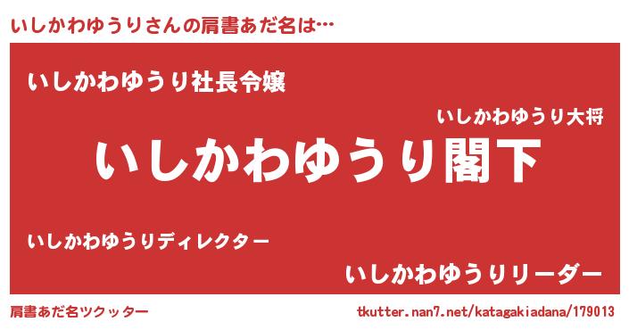 | 男性向けラノベタイトル風あだ名 | 『Re:いしかわゆうりから始める異世界生活』 |