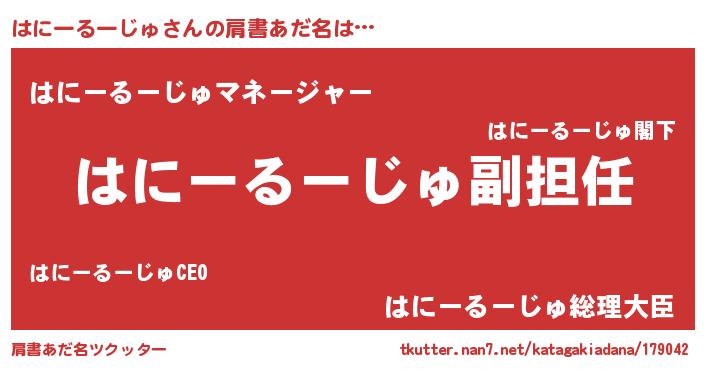 | 伝説のあだ名 | 『古文書に記された勇者はにーるーじゅ』 |