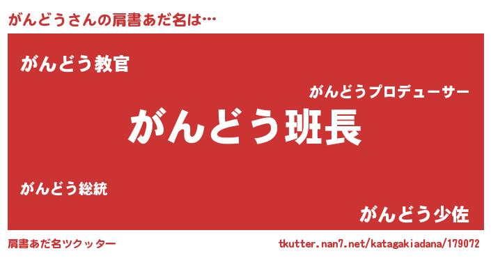 | 恥ずかしいあだ名 | 『ガンリンリン』『ガンドウデラックス』 |