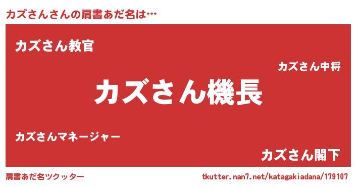 | 男性向けラノベタイトル風あだ名 | 『緋弾のカズサン』 |