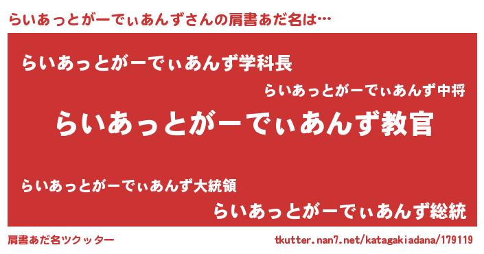 | 欧米人風あだ名 | 『ダレノガレらいあっとがーでぃあんず』 |