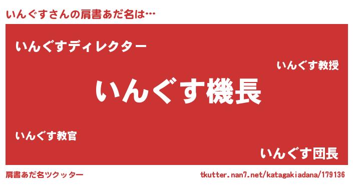 | 男性向けラノベタイトル風あだ名 | 『うちのいんぐすが世界を掌握している!』 |