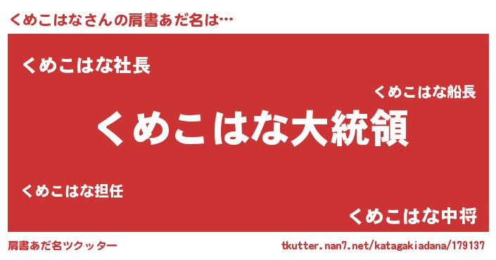 | 恥ずかしいあだ名 | 『くめっちょ』『プリティーくめこはな』 |