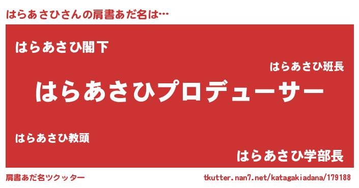 | ヒーロー風カッコイイあだ名 | 『ウルトラ戦士ハラアサヒ』 |