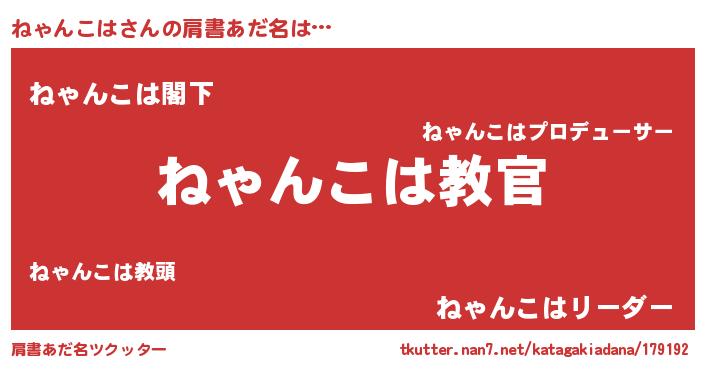 | 男性向けラノベタイトル風あだ名 | 『この素晴らしい世界にねゃんこはを!』 |