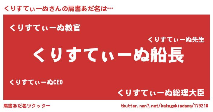 | 欧米人風あだ名 | 『くりすてぃーぬ・ステッグマイヤー』 |