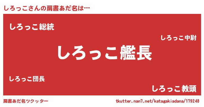 | 意味不明あだ名 | 『自称しろっこ』『永久保存しろっこ』 |