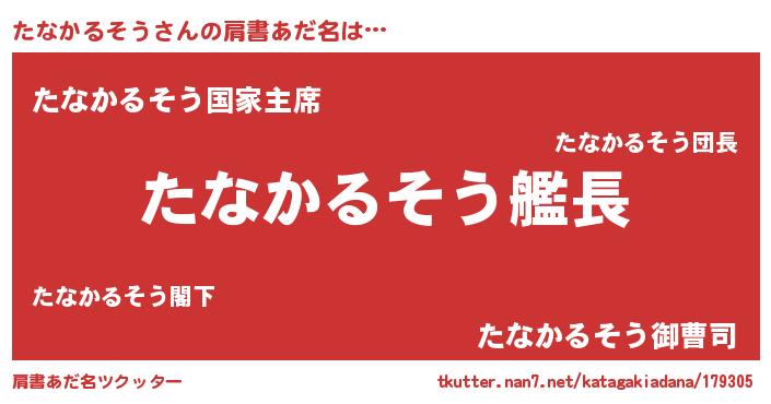 | 男性向けラノベタイトル風あだ名 | 『緋弾のタナカルソウ』 |