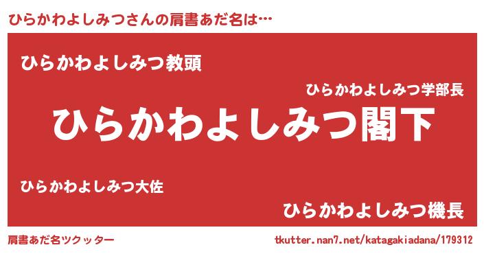 | 意味不明あだ名 | 『自称ひらかわよしみつ』 |