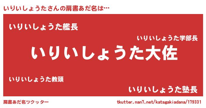 | 胡散臭い通販商品みたいなあだ名 | 『信頼と実績のサプリメント…その名も「いりいしょうた」』 |