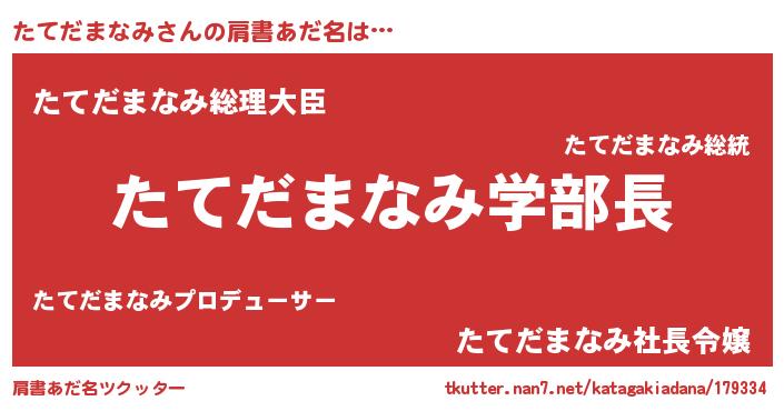 | 男性向けラノベタイトル風あだ名 | 『ノーゲーム・ノータテダマナミ』 |