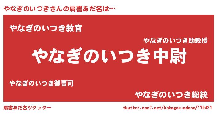 | 男性向けラノベタイトル風あだ名 | 『ヤナギノイツキスレイヤー』 |