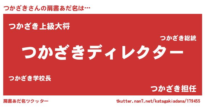 | 男性向けラノベタイトル風あだ名 | 『つかざきに滅ぼされるだけの簡単なお仕事です』 |