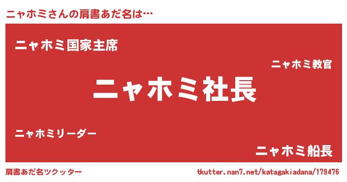 | 男性向けラノベタイトル風あだ名 | 『ニャホミの憂鬱』『魔弾の王とニャホミ』 |