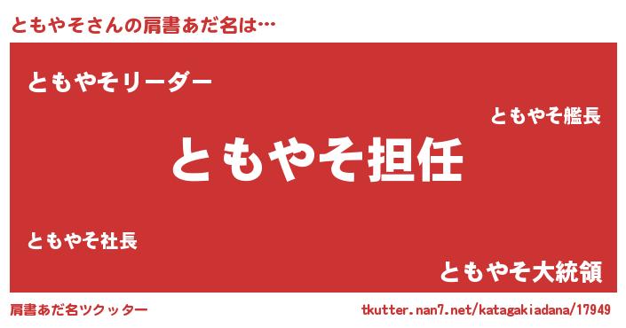 | ヘコむあだ名 | 『ともやそ(震え声)』『ともぷりん』 |