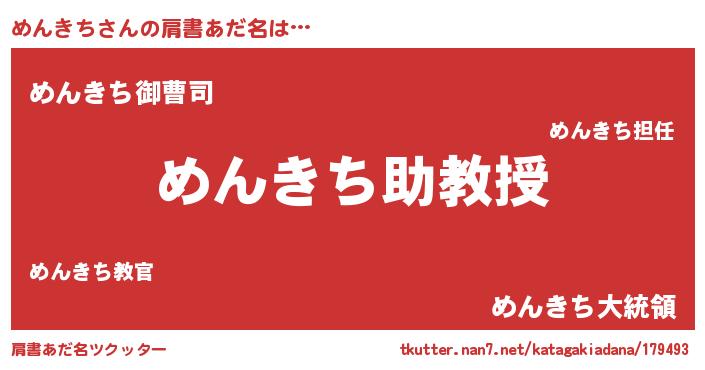 | ヒーロー風カッコイイあだ名 | 『慈愛の使者めんきち』『ネオメンキチ』 |