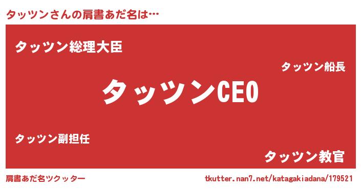 | ファンタジー風あだ名 | 『タッフェル』『エターナルタッツンー』 |