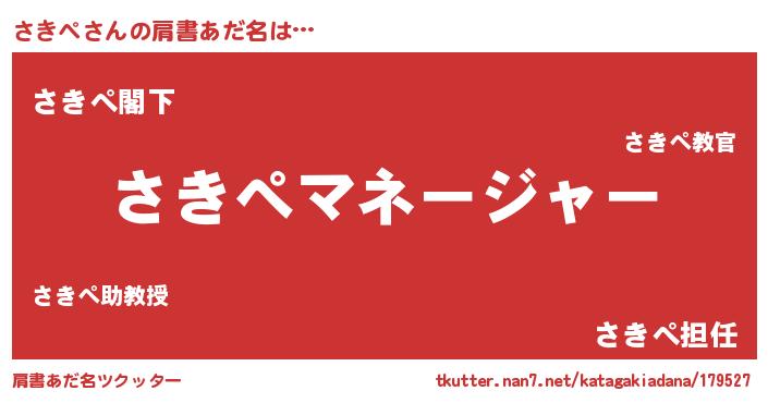 | 欧米人風あだ名 | 『アンジェラ・さきぺ』『ダニエルさきぺ』 |