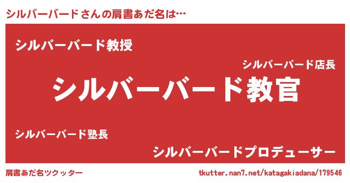 | 男性向けラノベタイトル風あだ名 | 『この素晴らしい世界にシルバーバードを!』 |