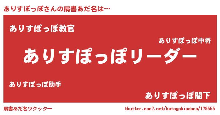 | 男性向けラノベタイトル風あだ名 | 『ダンジョンにありすぽっぽを求めるのは間違っているだろうか』 |