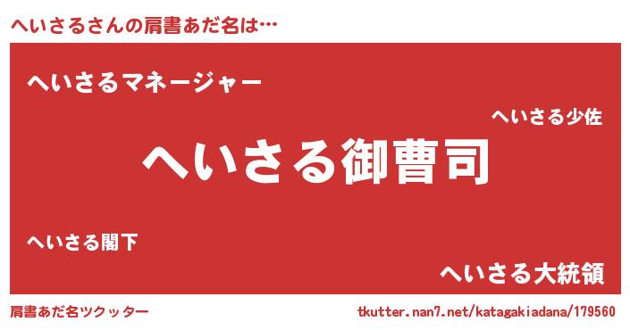 | 胡散臭い通販商品みたいなあだ名 | 『必ず成功する霊験あらたかなお札…その名も「へいさる」』 |
