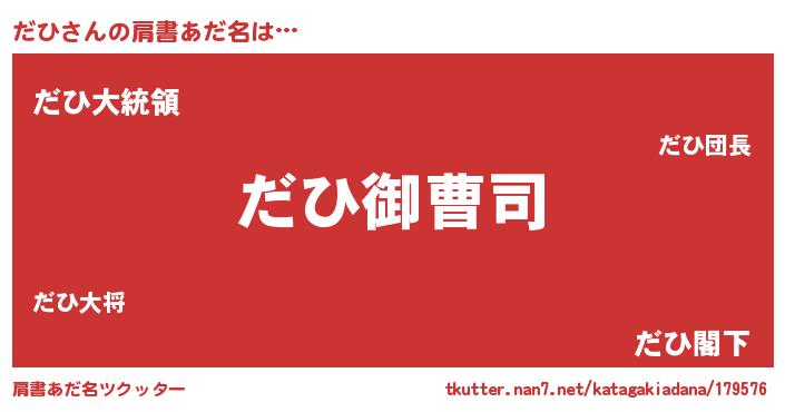 | ヘコむあだ名 | 『だひっふぃ~』『牛乳』『だひを』 |