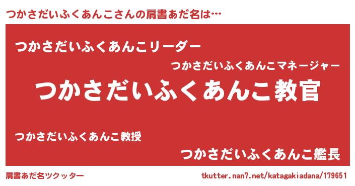 | 欧米人風あだ名 | 『ダレノガレつかさだいふくあんこ』 |
