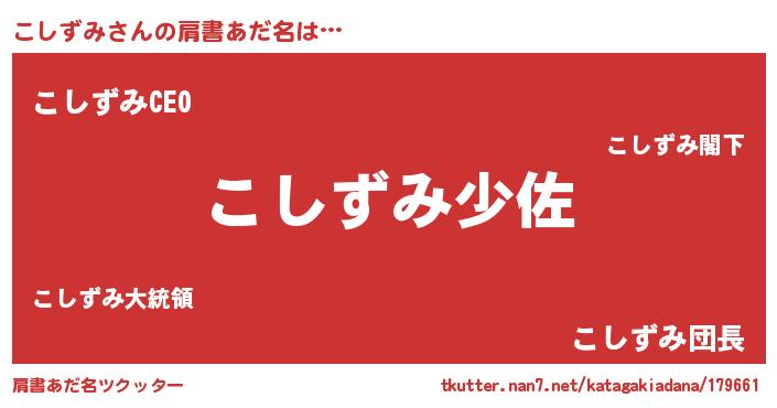 | 男性向けラノベタイトル風あだ名 | 『転生したらこしずみだった件』 |