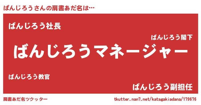 | 男性向けラノベタイトル風あだ名 | 『はたらくばんじろうさま!』 |