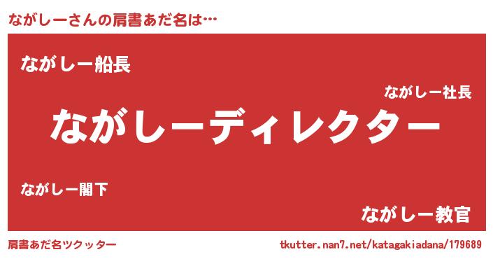 | 男性向けラノベタイトル風あだ名 | 『ながしーに滅ぼされるだけの簡単なお仕事です』 |