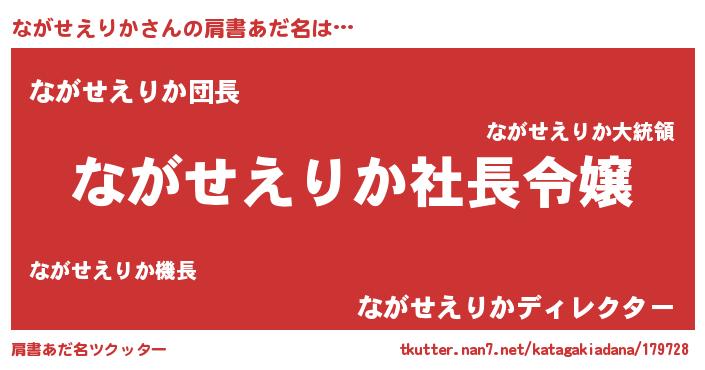 | ヒーロー風カッコイイあだ名 | 『スーパーナガセエリカ』『魔戒騎士ナガ』 |
