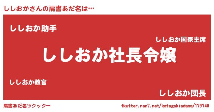 | 恥ずかしいあだ名 | 『プリティーししおか』『シシリンリン』 |