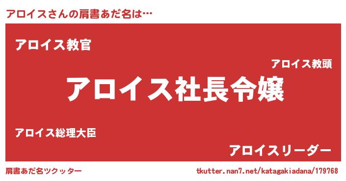 | 女子向けラノベタイトル風あだ名 | 『(仮)アロイスのやんごとなき事情』 |