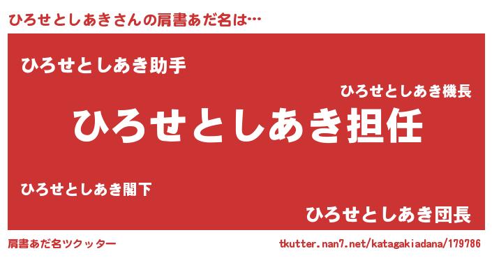 | 男性向けラノベタイトル風あだ名 | 『誰もが恐れるあのひろせとしあきが、ぼくの専属メイドになるようです。』 |