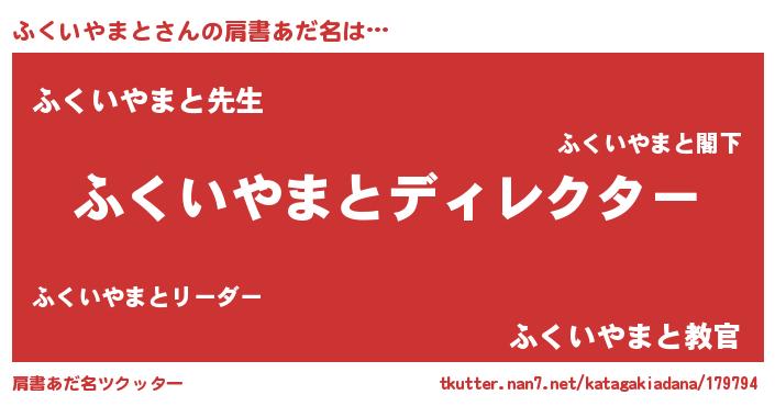 | ヘコむあだ名 | 『ふくいやまと(爆)』『ふくお』 |