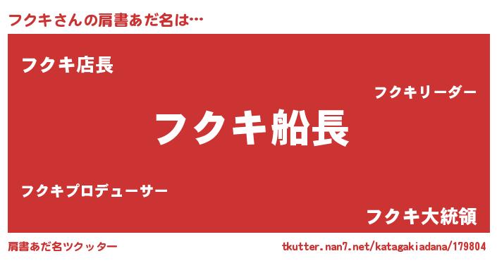 | ヒーロー風カッコイイあだ名 | 『スーパーフクキ』『ウルトラフクキマン』 |