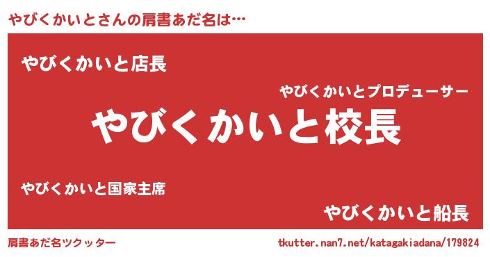 | ヘコむあだ名 | 『やびくかいと(笑)』『やびにゅー』 |