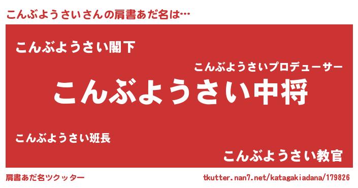 | 料理風あだ名 | 『こんぶようさいごはん』 |