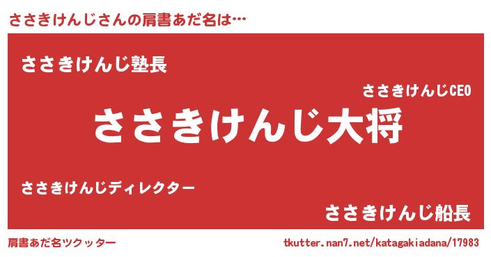 | 男性向けラノベタイトル風あだ名 | 『ササキケンジスレイヤー』 |