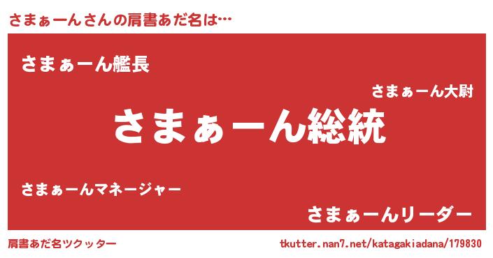 | 男性向けラノベタイトル風あだ名 | 『Re:さまぁーんから始める異世界生活』 |