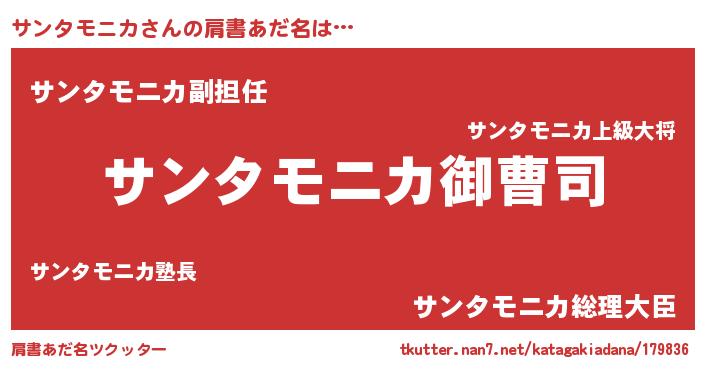 | 男性向けラノベタイトル風あだ名 | 『サンタモニカアートオンライン』 |
