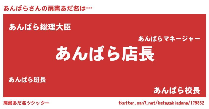 | 意味不明あだ名 | 『ペロリンあんばら』『永久保存あんばら』 |