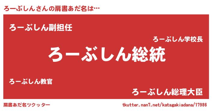 | 意味不明あだ名 | 『自称ろーぶしん』『永久保存ろーぶしん』 |