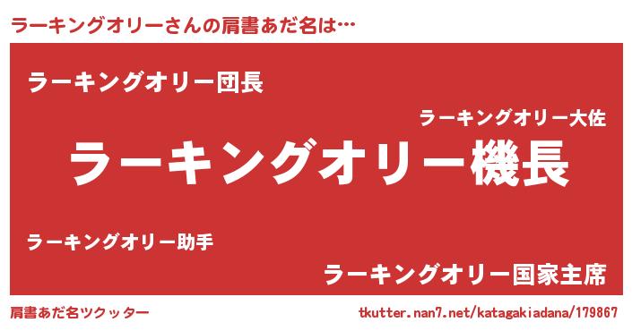 | 男性向けラノベタイトル風あだ名 | 『緋弾のラーキングオリー』 |