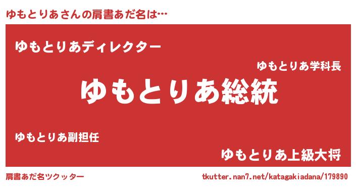 | 男性向けラノベタイトル風あだ名 | 『Re:ゆもとりあから始める異世界生活』 |