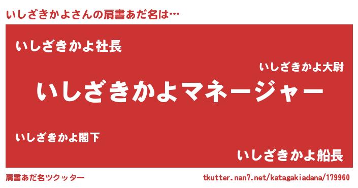 | ヘコむあだ名 | 『いしにー』『なまこ酢』『いしっぺ』 |