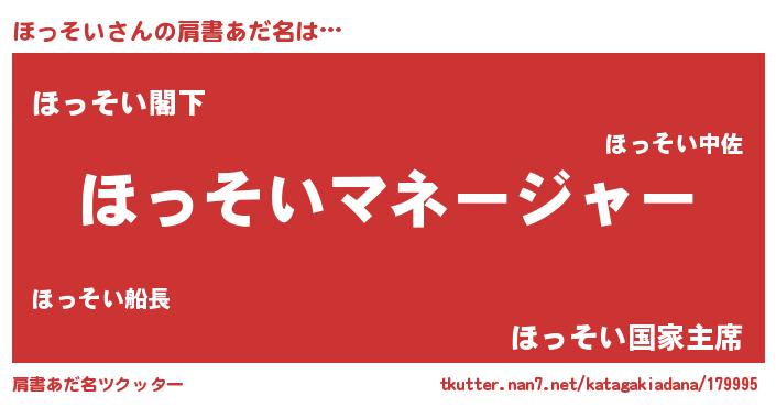| ファンタジー風あだ名 | 『ゼホットゥ』『エターナルホッソイー』 |
