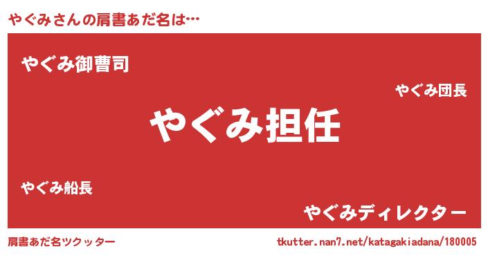 | 男性向けラノベタイトル風あだ名 | 『やぐみという概念が存在しない退屈な世界 』 |