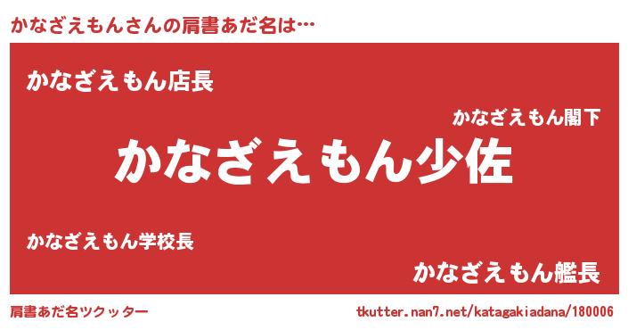 | 男性向けラノベタイトル風あだ名 | 『かなざえもん~年齢イコール彼女いない歴の魔法使い~』 |