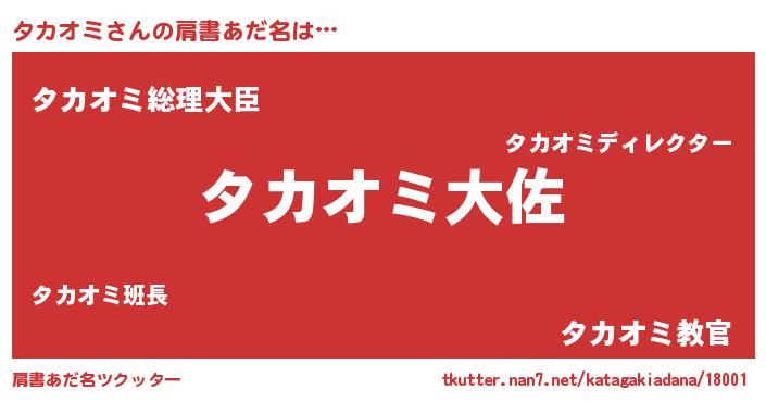 | ヒーロー風カッコイイあだ名 | 『ウルトラタカオミマン』『仮面タカダー』 |